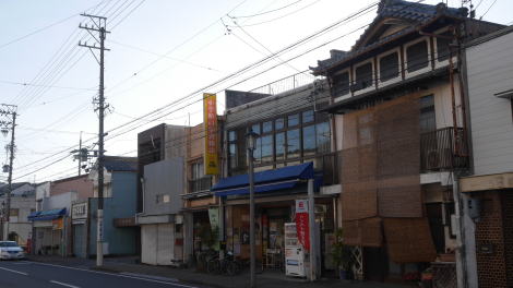 遠く諏訪湖に源を発し、伊那谷を形成しながら南流する天竜川はこの二俣地区で平地に開放される。二俣はいわゆる谷口集落として市街が発達してきた。東海道本線の迂回路として建設された旧国鉄二俣線が掛川と豊橋方面を結び、浜松からは遠州鉄道がここに到達しており、いずれもローカル線ながら小さな拠点となり、また最近には新東名高速も南部を通過し、交通の便はよいところである。 中世には二俣城が存在した。西に天竜川、東に支流二俣川を挟んだ要害の地に構えられ、二俣の地名も河川が合流するところという意味合いに由来するという。家康の配下が代々城主となっていたが、武田氏の侵攻により攻防が繰り返された。その後家康の関東進出に伴い廃城となったという。 江戸時代の多くは幕府領で、山地と平野の境界に位置していることから物資が集まりやすく、天竜川の水運もあって物流の拠点となった。上流側の山間部で産出される天竜材と呼ばれる材木、繭などが集められ取引された。北遠州への入口でもありまた秋葉神社への参拝客の拠点ともなったので、二俣の町は大いに賑わった。六斎市として毎月2・7の日に市が開かれ、また享保12(1727)年の記録で酒造家11・石屋3・紺屋4・鍛冶屋3・桶屋1などがあった。 古くからの市街地は二俣城址の北東、二俣川右岸の平坦なところに南北に細長く展開している。商店街となっているため伝統的な建物が連続しているわけではないが、旧市街地であることはすぐに判別できるたたずまいである。木造三階の旅館建築、下見板張りに瓦葺の和洋折衷の建物などが見られるほか、看板建築も目立ち興味深くたどれる町並探訪となった。昭和の雰囲気が濃厚に感じられる町並といえようか。枝道を少し入ったところには煉瓦蔵のある印象的な路地風景もあった。 ネットなどを見るとささやかながらそれらの家並や建物を財産と捉え、活用する動きがあるようだ。 |
