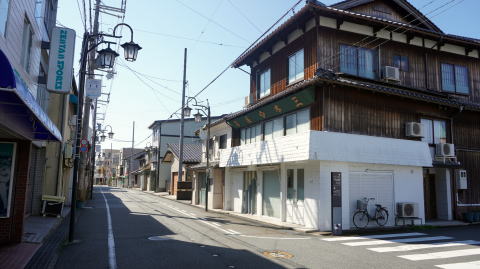 大化改新の頃の条里制遺跡も発見されているところで、肥沃な平野が広がる豊岡盆地は古代から着目されていたことがわかる。 市街地の南東部に神武山という小高い丘があり、ここがかつて城が構えられていたところである。羽柴秀吉による但馬出兵後、その部将により豊岡城下町が計画・建設され現在の町割の基盤となっている。 1615年の一国一城令により豊岡城は廃城となったが、北但馬の中心地としての役割は継続し陣屋が設置されている。豊岡藩が成立し、幕末までその多くが京極氏による統治であった。 周囲の山間部や海浜部からの産物は地形的にもこの豊岡に集結することは自然であった。円山川は水運に使われ、河口の津居山は港町として日本海沿岸との交易も盛んであった。商工業も発達し、鞄の町ともいわれるように手工業も盛んに行われるようになった。 廃藩置県時には一時豊岡県が成立しており、北但地区の中心として長らく機能してきた町である。 市街地には幾つか古い町並の残る地区が見られ、それぞれ異なる表情を持っている。まず神武山の南東側の城南町付近では、但馬らしいうだつや袖壁を従えた町家が見られ、間口の広いものも多く豊かな商家が多く立地した地域だったのだろう。バス通りの1本西の筋にも連続性の高い家並の所々に伝統的な建物が見られた。豊岡新町というバス停があったが、城下町が拡大される過程で商人が新たに集積した所だろうか。北側の京町にかけても散見され、一部には木造三階建ての店舗も見られた。 またこの町のもう一つの特筆すべき点として洋風の建物や、看板建築と俗に呼ばれる前面に胸壁を立ち上げた建物が多いことが挙げられる。特に豊岡駅の東側、市役所のある東西の通りに顕著に見られ、看板建築が連続した景観もある。これらは大正14年の北但馬地震からの復興の姿という。北但大震災とも形容されるほどの大災害で、地震そのものに火災による被害が加わり市街地の多くの建物が失われた。その復興建物と云うと既に100年近くになるが今なお現役の店舗として使われており、貴重なものといえよう。 界隈で最も目立つ旧市役所の建物も昭和初期の洋風建築であり、またその向い側には昭和9年築の旧銀行建築が現在は宿泊施設として利用されている。この辺りから東がこの町を象徴する風景ともいえるだろう。 |