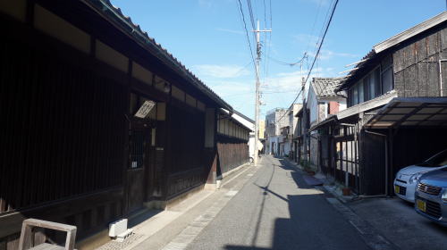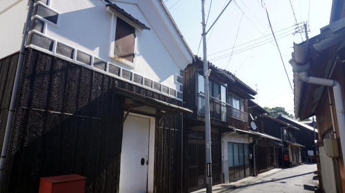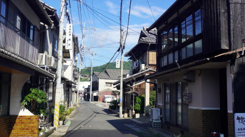 | 県南東部の瀬戸内沿岸に位置する牛窓。15世紀頃からの貿易港で、今でも古い港町としての香りを濃厚に伝えている。 江戸期の牛窓は備前有数の港町として西廻り航路の寄港地となり大いに繁盛した。また朝鮮通信使も立ち寄り、構成人員は時に500人にも及ぶこの使節団を受け入れ、宿屋だけでなく寺の境内も宿泊所に当てられたという。このような折の町の賑わいはどんなものであったろう。 主に古い町並の残るのは市街中心の東側、関町から東町と呼ばれる地区で、海岸線に沿った細い道筋に港町らしい家並が連なっている。現代風に更新された家も少なくなく、一方で取り壊され駐車場などに変貌したものも見られ、連続した古い町並としての密度はそれほど高くない。しかし街路の屈曲を曲ると新たな視界が開け、古びた格子の美しい町家などが現れてくる様子は、何が現れるのだろうという期待感を抱かせ興味深い散策となる。中でも旧牛窓銀行本店(大正4年建築)は煉瓦造りの洋風建築で、木造の町家の目立つ町並の中では異質であるが、繁栄を誇っていた時期のこと、当時としては斬新な建物がここに建設されたのは不思議ではない。内部では牛窓の歴史が写真で公開されている。 さらに東に向かい、海へ突き出た燈籠堂を回りこんだ先に展開する東町地区は慶安年間に入海を埋立てて開かれた町で、造船業が盛んであった。今でも造船所の看板を掲げた姿が目に入り、一隅にあるとりわけ大きな豪邸は東服部家(屋号若菜屋)、一大材木商であった旧家だ。港町としての商取引の基幹に木材があり、船大工、船具商も多く立地していたという。今でも商いを続けているのか故意か、年季の入った船具商の木製看板を掲げているお宅もあった。 |