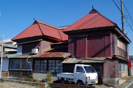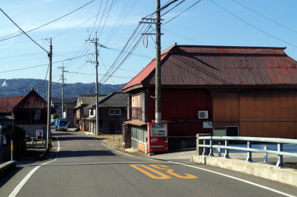 一方旧長崎街道は牛津駅の南東から北西に向けて通過しており、牛津宿が置かれた。宿場町として発達する前に既に港が賑わいを示しており、牛津川をさかのぼって集められた大坂の呉服、肥後の畳表、大牟田の石炭など各地の名産がここに集結、街道を介して各地に運ばれていった。商家や問屋が林立し、「西の浪花」とも形容されるほどの賑わいだったという。 宿駅機能としても上使屋(本陣)をはじめ問屋場、馬立場、高札場などが整備されていた。 現在は港町としての姿はほぼ残っていないが、宿場町としての様子は多少うかがい知ることができる。旧街道のうち長崎本線の踏切を挟んで南東側が旧牛津本町で、上使屋をはじめ主要な施設はこちらに置かれたというが、商業施設をはじめ近代化されており面影は残っていない。一方北西側の旧牛津新町には街道集落らしい家並がわずかに残されていた。商家を思わせる伝統的な建物はないが、住宅として特徴的な姿が目立つのが特筆される。屋根の形が平面的に「コ」の字型を示した「くど造り」である。基本的に茅葺屋根のものを指すらしいが、ここで見られるのはトタンや鉄板で覆われているものの、もとは茅葺と思われるのでくど造りと呼んで差し支えなかろう。見たところ街道沿いだけでも5軒程度目についた。都市部に近く幹線鉄道の駅から徒歩数分のところにこのような家々が多く残されているのは珍しいのではないだろうか。 なお旧街道から少し外れたところに印象的な赤レンガの建物がある。江戸後期から明治期にかけて呉服商を営んだ田中家の倉庫であり、イベント等で活用されているようだ。田中氏は地場の百貨店「玉屋」の創始者でもある。こういった事実も、牛津が地域有数の商都であったことを証明するもののようだ。 古い町並としての質量は今一つとはいえ、印象度は高い町並と言えよう。 |
