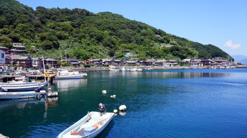 | 愛媛県八幡浜市【漁村】 地図 町並度 5 非俗化度 9 −宇和海に位置する五島から成る島々 東岸に延々と集落が連なる− |