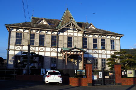 | ●旧三野町役場庁舎(S9)) 左右対称の張出し部を持つ構造、アーチの窓、中央部の曲折を持つ屋根など非常に凝った外観で、美しい建物だ。 |