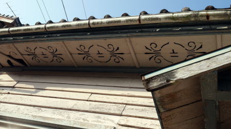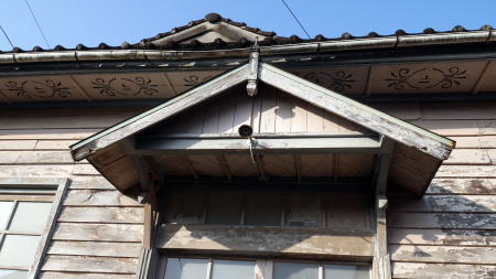 | 古い街道沿いの集落に残る郵便局の建物。軒下には郵便マークが彫られている。 | |