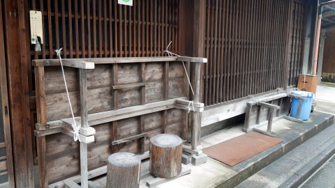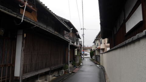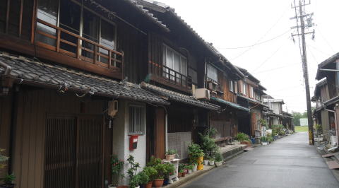 | 四日市の市街中心から北に約5kmのところにある東富田町。現在は海岸線はやや遠ざかっているが、かつては伊勢湾に面する漁師町であった。 藩政期には桑名藩領に属し、もともとは東海道沿いに家並が開け桑名宿と四日市宿間の町場として名物の焼蛤などが売られ、街道集落的なところであった。しかし安永9(1780)年の大火によって町場の多くが失われ、それを機に浜方と呼ばれた海岸部の浜洲や沼沢地などが整備され、新たな町が造られた。町の性格も漁村となり、特に幕末期頃から本格化した。明治に入ると水揚げされた魚介類やその加工品の行商が行われるようになり、特に明治20年に鰹節問屋が開業してからは紀州をはじめとして全国から鰹節を集荷のうえ、全国に売り歩いた。最盛期には行商を行う者が300人ほどに達したといい、富田行商人という言葉も響くほどだったという。 大正中期以後、紡績工場が立地し商人の多くは工場勤務に転じ、また小売業の発達で生産地から直送することが基本となり、行商は次第に衰退した。 漁業自体は江戸後期から通して盛んで、明治15年には漁家210、漁民1100人余りを数え、水産会社や海産物問屋も立地した。 地内西部を国道1号が通っている。その東側一帯が大火後に整備されたという地区で、地図を見ても海岸に向って何本もの街路が計画されたさまが伺える。家並はそれに沿い整然と構えられ、その間に横路地もあるが通路状の細いものであるので、碁盤目状ではなく櫛の歯状の町割というべきだろう。そういう街区が200m×500mの範囲に展開している。 家々は木質感が高く、1階部の荒い格子、2階部の木製欄干など特徴的な外観を持ち、密集度も高い箇所が多く歩き甲斐がある。面的に展開するため次の筋ではどんな家並が展開しているのかと期待感を抱かせるのもよい。国道に近いあたりに寺があり、この寺を中心に集落がまとまっている印象であった。 歩いていると玄関脇にばったり床几のような木製の台が備えられている風景を多く目にした。これは地区の祭礼の折に使用されるもののようで、「祭礼委員」という札が表札横に見られるお宅もあった。 |