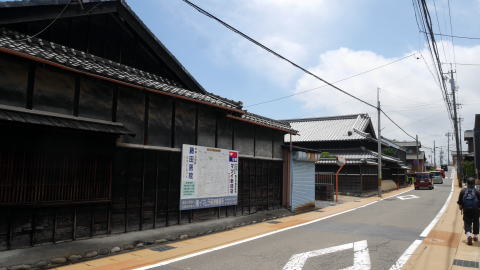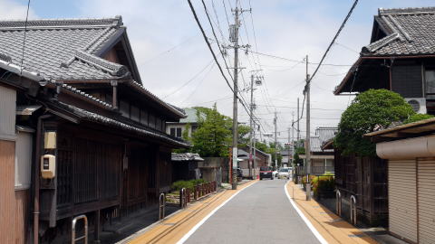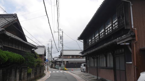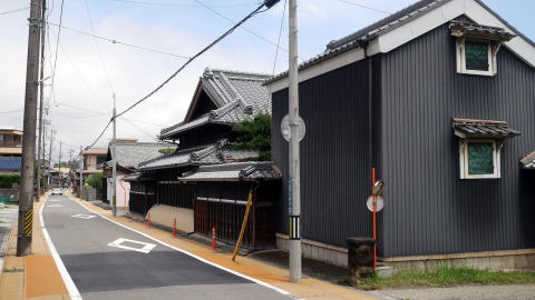 | 日永はかつて東海道から伊勢街道が分岐する追分のあるところとして知られ、これは現在も国道1号の交差点として残されている。常夜灯や鳥居があり、この鳥居は桑名の七里の渡しに建てられた一の鳥居に対し、二の鳥居と云われていた。 この交差点から北はしばらく東海道筋が明確に残っており、宿駅としては指定されていなかったものの追分を控えた街道集落が展開していた。日永村は北の四日市宿、南の石薬師宿とのいわゆる間宿で、宿屋や茶店もあったという。伊勢宮への客も多いことからかなりの賑わいを示し、「日永うちわ」「日永足袋」などの土産物も有名だった。中でも「日永うちわ」は最盛期には10軒もの製造業者があったといい、伊勢参宮客の夏の土産品として知られていた。今も「団扇最中」という菓子を売る店舗があるのもその名残だろう。 街道筋は1.5車線ほどの幅であるが、かつての幹線路は線形がよく今でも短絡路になっているのか車両の往来が多い。合間を縫って歩いていると一里塚跡、ついで商家を思わせる建物などが見えてくる。伝統的な建物は散在的で連続した個所は少ないものの、歴史を感じさせる家並は日永二丁目から四丁目にかけ約1kmにわたって続き、東海道筋の往来の多さ、賑わいを示しているようだ。 |