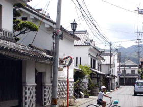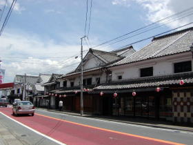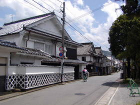 | 国道は旧豊後街道で、重々しい造りの商家が軒を連ねています。最盛期は200軒を超えるとも言われた土蔵造りの建物もさすがに今では減っていますがそれでもなかなか見応えがあります。 | |