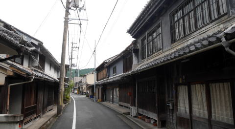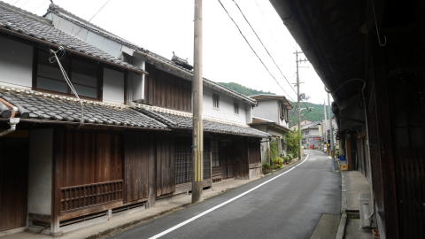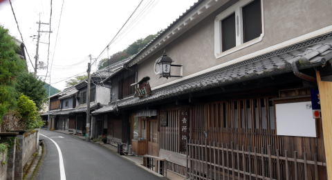 近鉄吉野線は吉野町役場のある町の中心上市の手前で吉野川を渡り、吉野山の麓に達している。この付近が現在吉野山の入口であるが、約1km東に飯貝という地区があり、かつてはここが正面口だったという。 地名は古代の部民(職業区分)であった猪養部に由来する猪飼という小字があったことに由来するといわれている。 もともとは本善寺という寺の門前町として発達したところで、茶店などが並んでいたという。上市村の対岸にあり「桜の渡し」とよばれる連絡船があり、参詣客はこれを利用して山に登って行ったという。今も下市地区とを結ぶ橋は桜橋と呼ばれている。この渡し舟は吉野四艘と呼ばれた航路のひとつで、船株仲間により運行されていたが、幕末になると上市村と飯貝村共同で運営されていたという。 川港として位置づけられ、吉野川上流側から流れ下った筏をここでいったん止め、荷を改め荷崩れなどを直し和歌山へ下していたという。ここには材木中継問屋と口役番所が置かれていた。 昭和初期に近鉄の前身である吉野鉄道が開通後、吉野の玄関口としての役割を終えた。大正中期の記録では戸数160のうち塩小売5・飲食店5・鍛冶3・煙草小売3・雑商27などとあり、登山口でなくなって以後も商業町として賑わっていた様子がわかる。 現在歩いてもこの界隈には外来客の来訪はない。しかし、連なる家々は堂々たる大型商家の姿で、古い町並として連続性の高い箇所も残されていた。天保13年創業の「吉野拾遺」という葛湯で有名な老舗「松屋本店」も虫籠窓と大和らしい粗い格子の佇まいで営業されていた。 賑わいの中心は西側の近鉄沿線に移るも、間接的にその恩恵は受け続けたためそれほど廃れず、幹線道路も対岸に整備されたためそのまま残ったといったところだろうか。人知れず良い町並が残っていた。 |