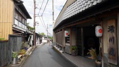 | 吉野山は修験道の総本山であり、大峰山の前衛としても位置付けられ中世には武装兵力をも有し、地形を利用して要害を築いていた。 江戸時代は一時幕府領だった時代もあるが大半は吉野蔵王領という独自の統治領下であり、金峰山寺に与えられた朱印地(幕府により寺社の領有地として承認された土地)であった。 門前町は長い尾根上の街村を三つに区切り、勝手神社より山上側を六ヶ院、勝手神社から蔵王堂までを中町、それより麓側を野際と呼ばれていた。さらにその中を更に関屋町・市場町など多くの町に分けていた。市場町は今の勝手神社付近で、蔵王堂までの中町と呼ばれた一帯は平坦地でもあり、今でも多くの旅館・土産物屋などが営業されており、門前町の中心をなしている。建物も町家・商家風の伝統的な外観を残したものも多く、古い町並を形成している。名産葛切り、柿の葉寿司などを売る老舗も多い。 野際地区は坂道に展開し、蔵王堂を拝みながら店舗が並ぶ門前町らしい街区で、ロープウェイ乗り場近くに黒門がある。この門は金峰山寺の総門で、吉野山に上る人々にとって関所の役割を持っていたという。また坂の途中には国重文に指定された銅製の鳥居がある。 江戸期までは軍事的・政治的権力を帯びていた吉野山一帯も、明治以降周囲からの交通の便が良くなるにつれ桜の名所としての注目度が高まっていった。現在では関西のみならず全国的にも有名で見頃には多くの花見客で混雑する。 桜や寺院には注目されても、門前の町並そのものは余り着目されることはないと思うが、このように質量ともに古い町並として十分なものが残されている。 |