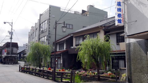 | 小規模な旅館や店舗の並ぶ吉岡温泉の町並 | |
